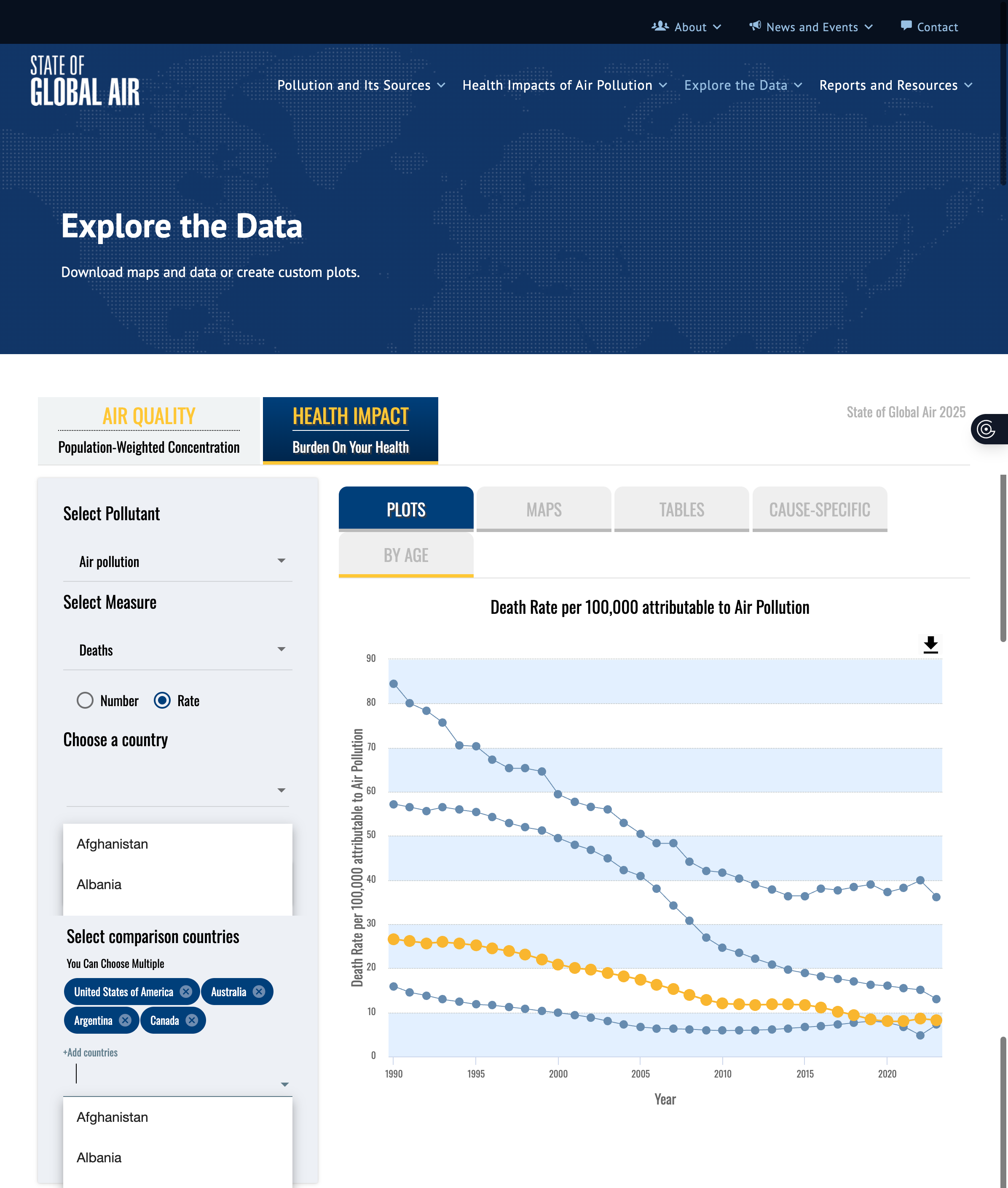 The health impacts of air pollution result in increased hospital admissions and emergency room visits, as well as increased risk of premature death. Deaths attributed to air pollution are mainly from heart disease, stroke, chronic obstructive pulmonary disease, lung cancer, and acute lower respiratory infections in children.
